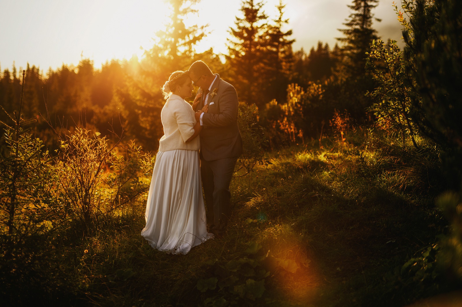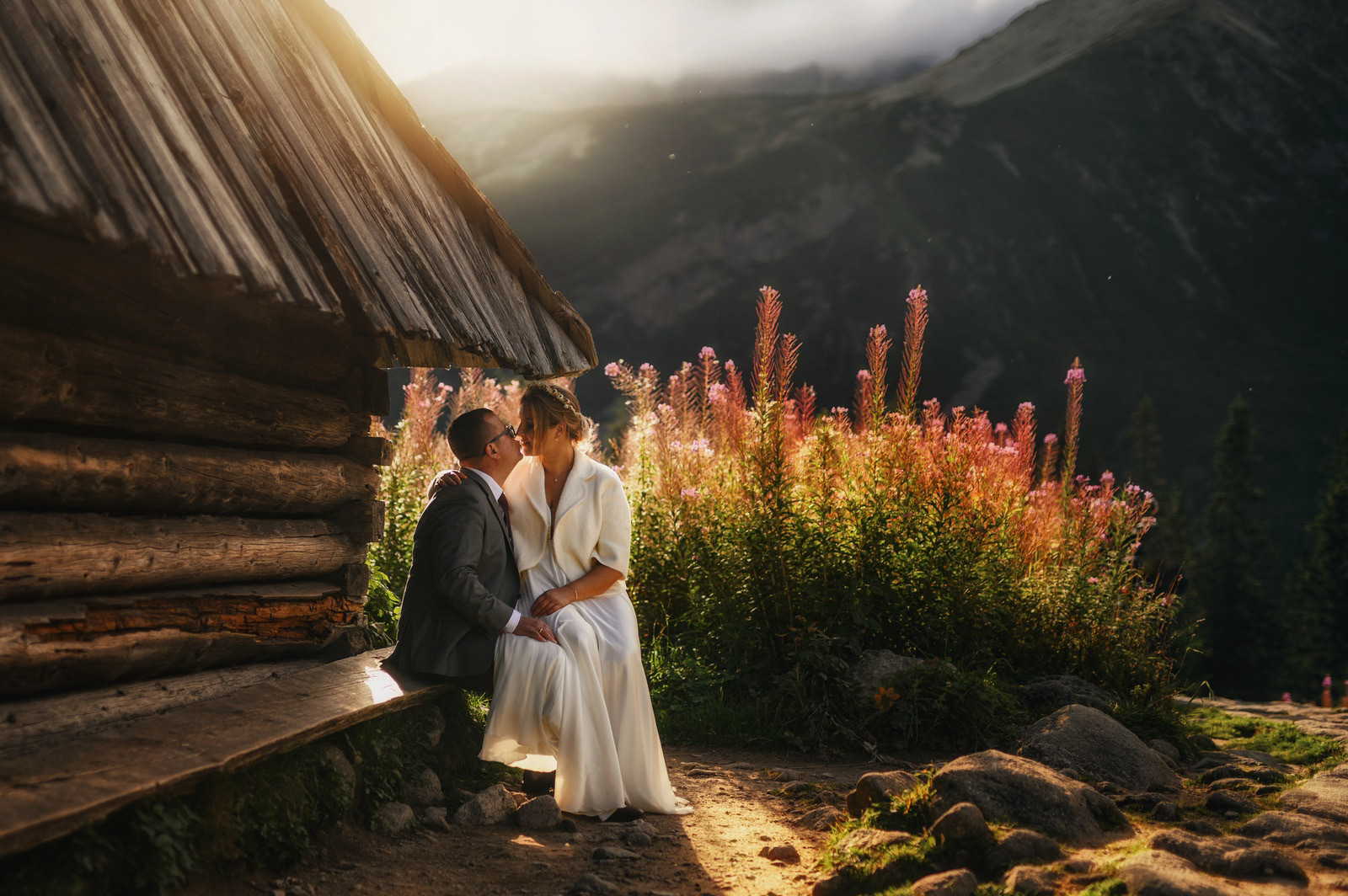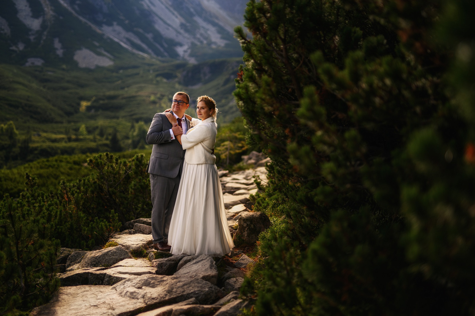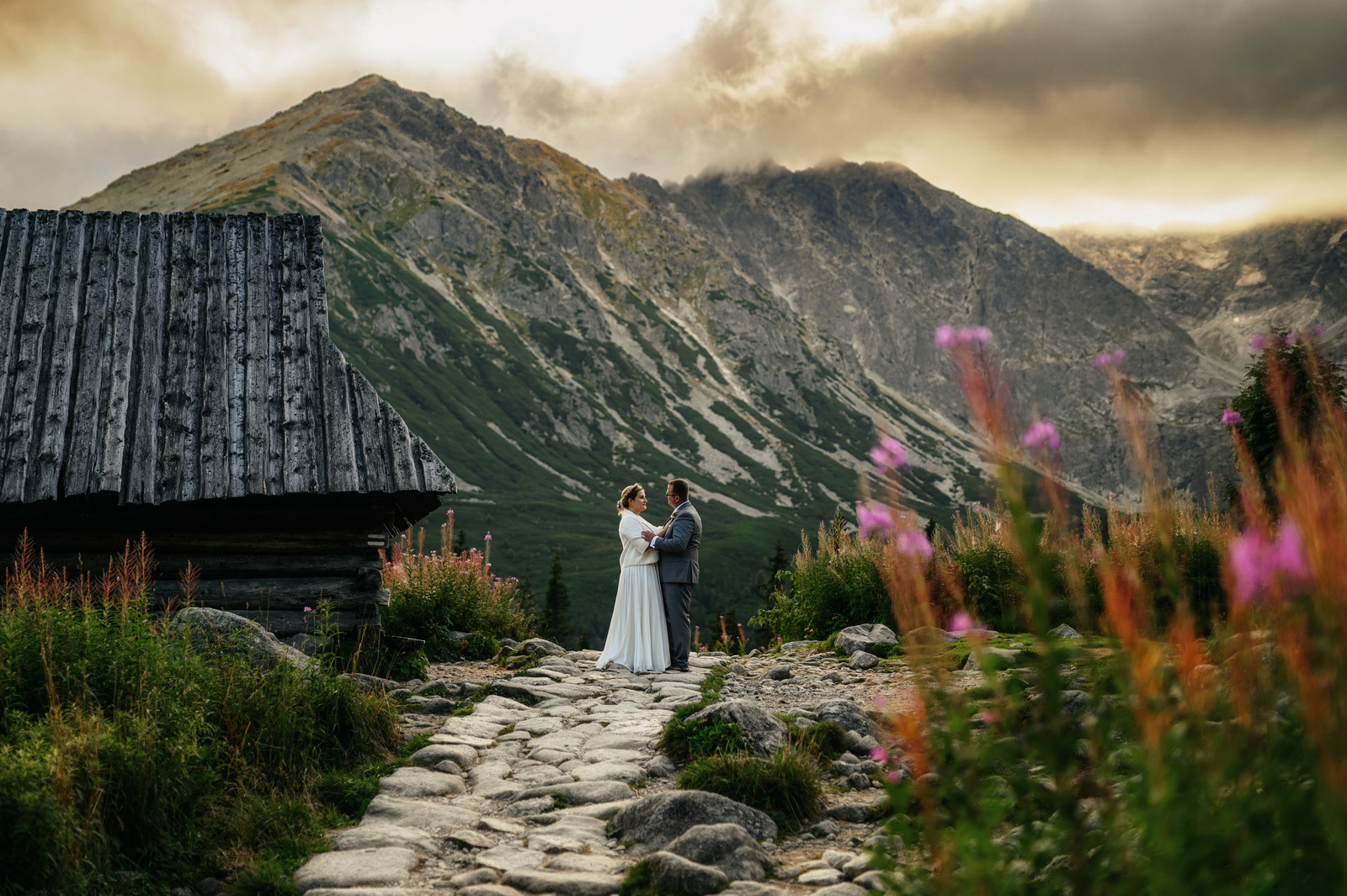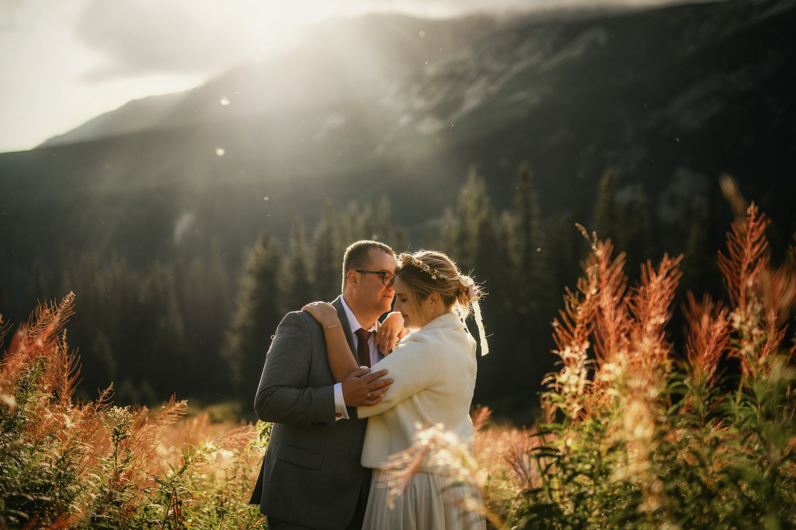 Sesja poślubna o wschodzie słońca na malowniczej Hali Gąsienicowej.