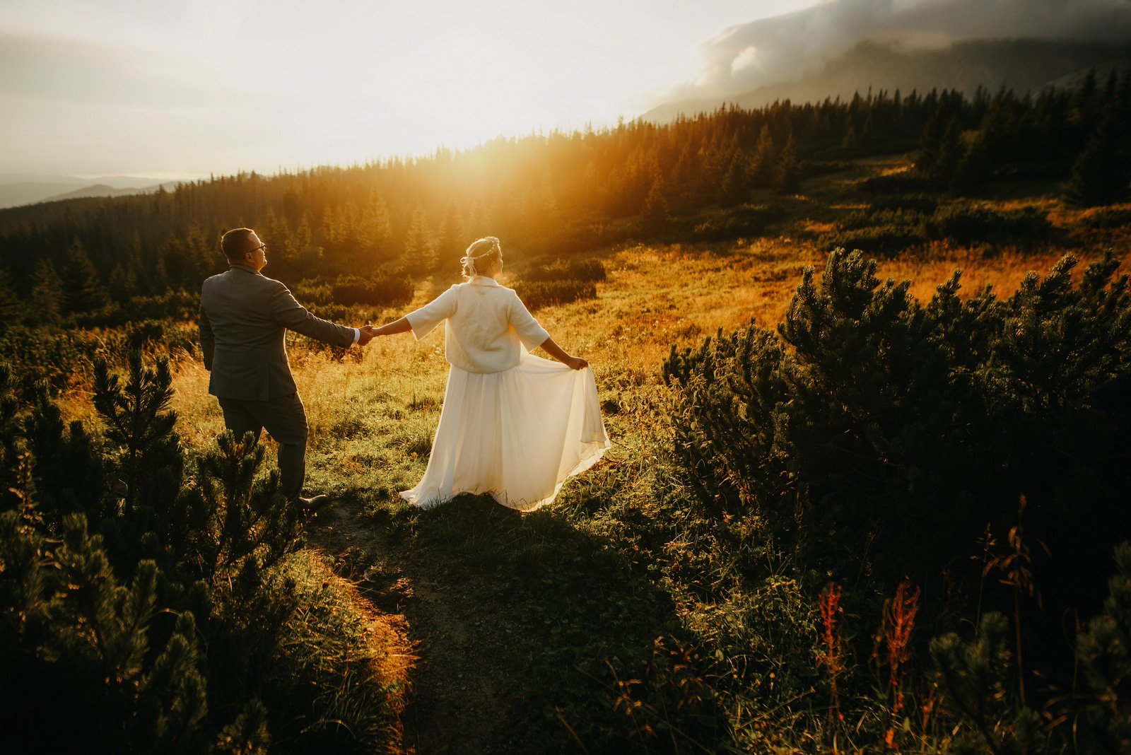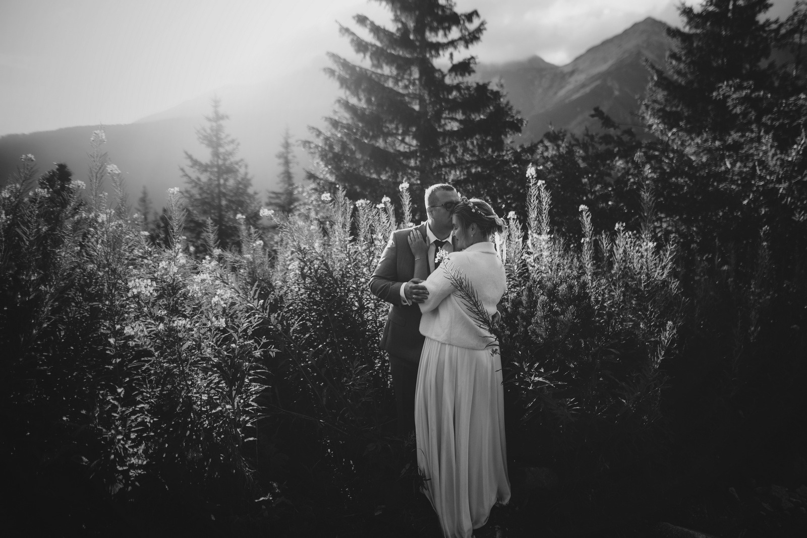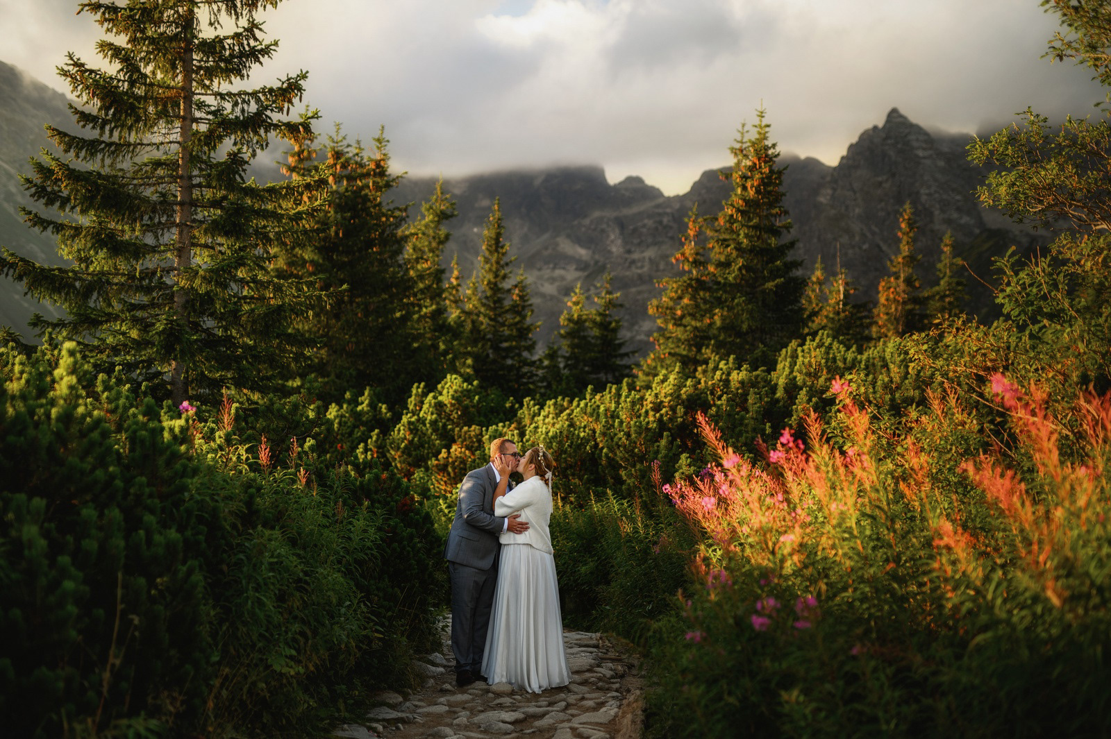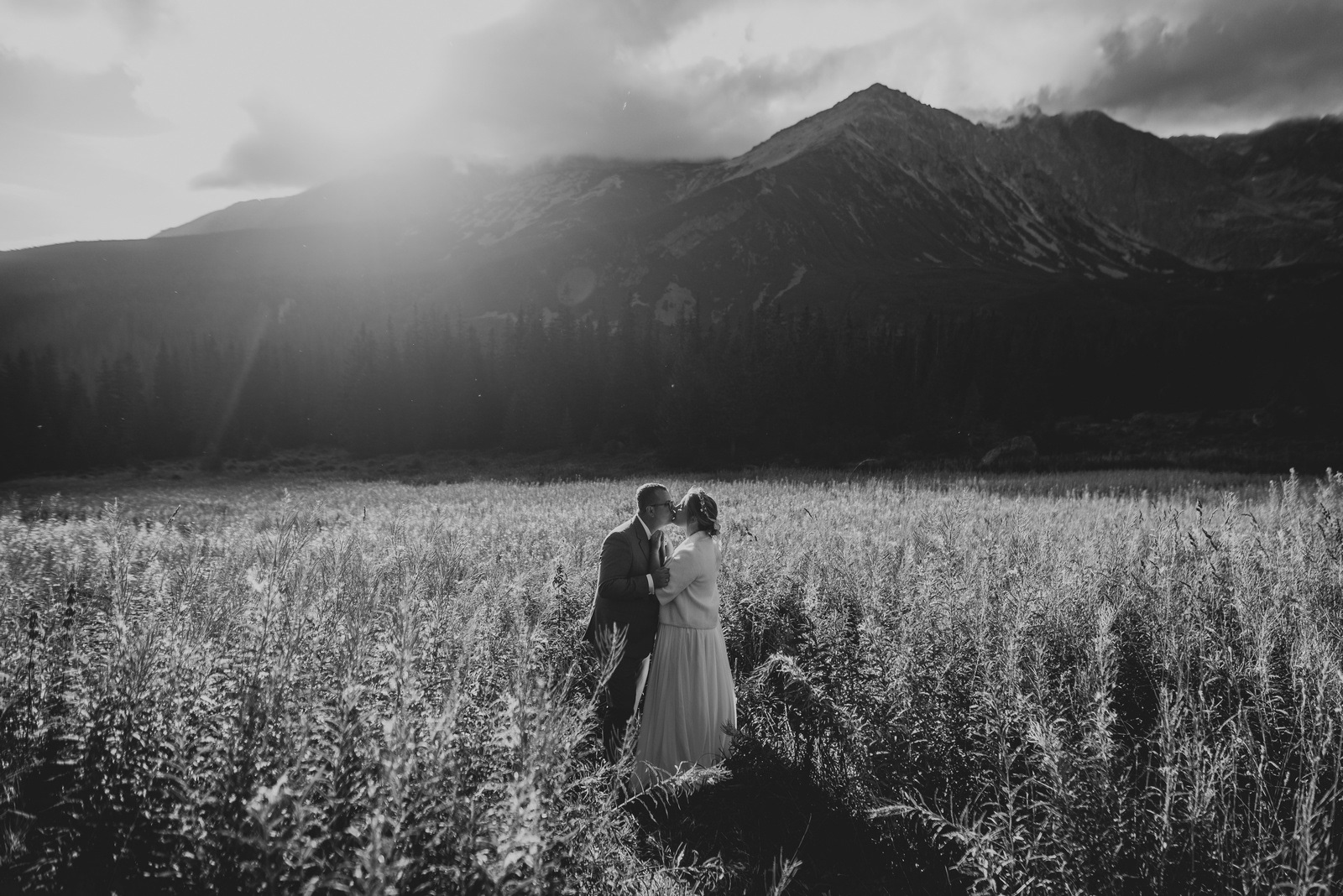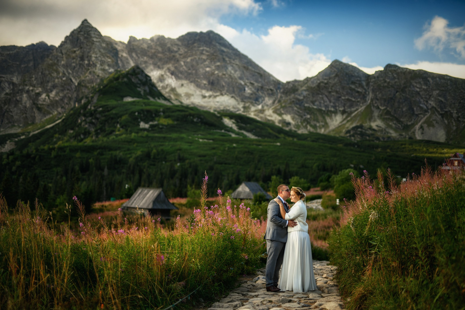 Sesja poślubna o wschodzie słońca na malowniczej Hali Gąsienicowej.