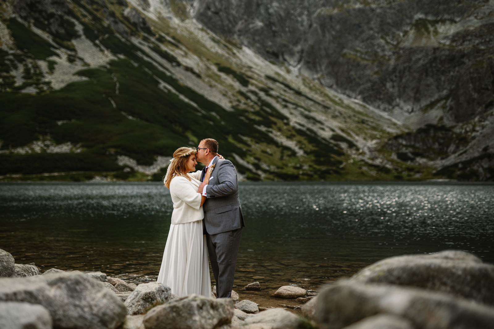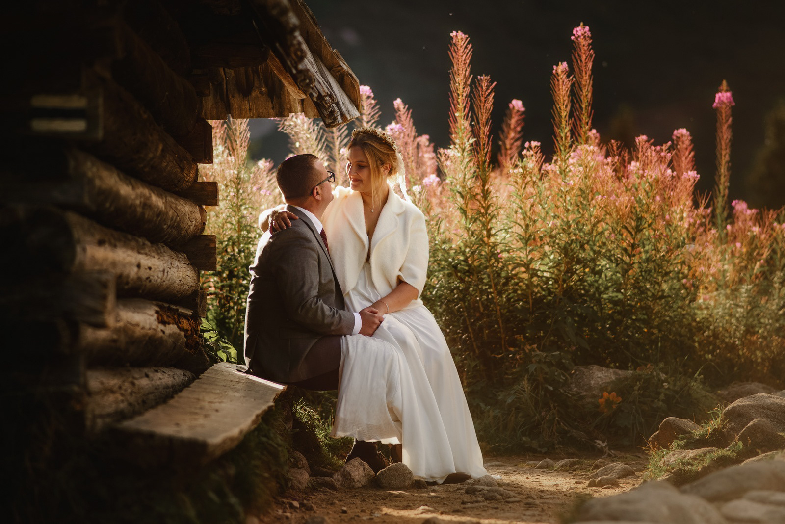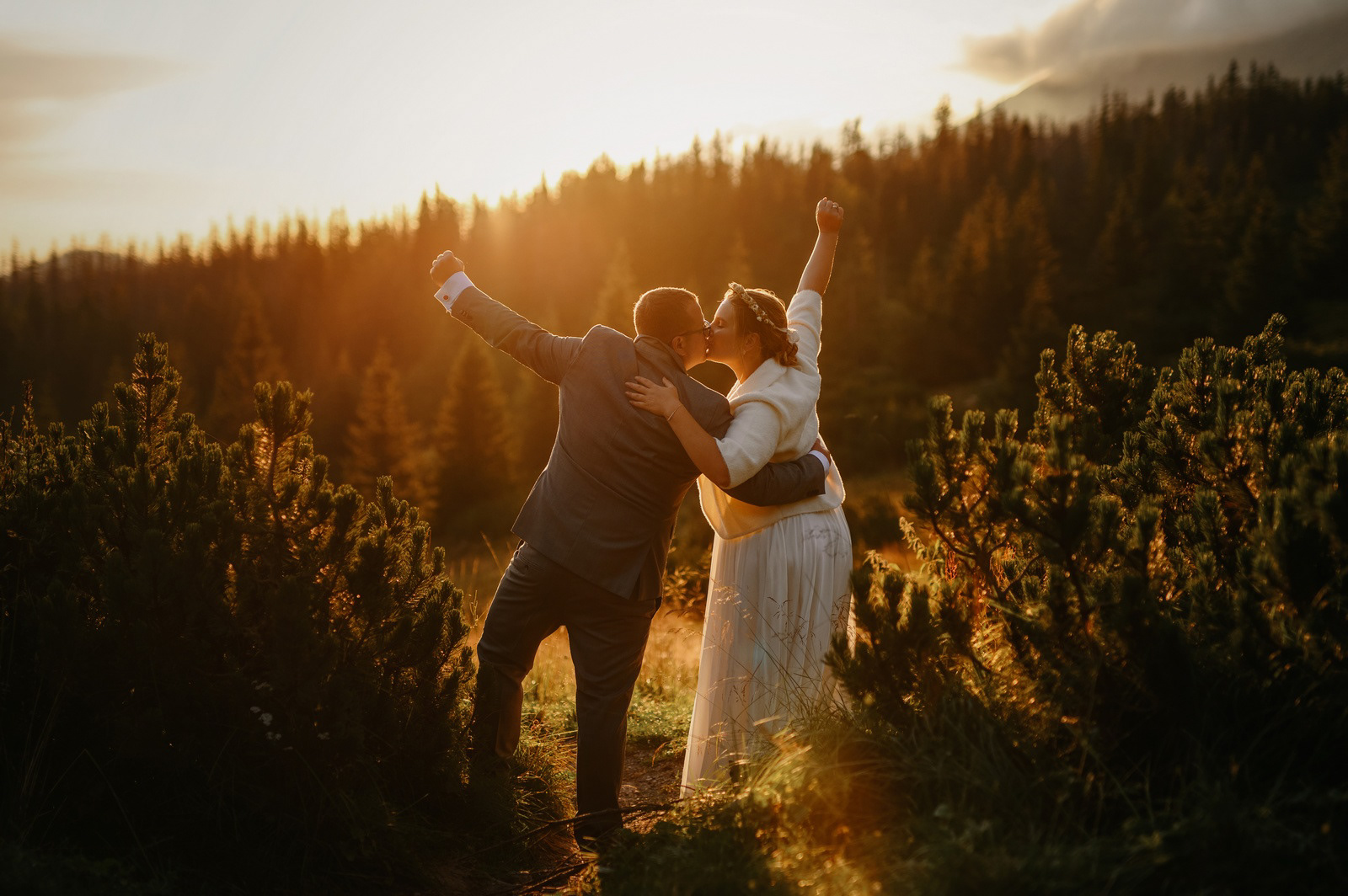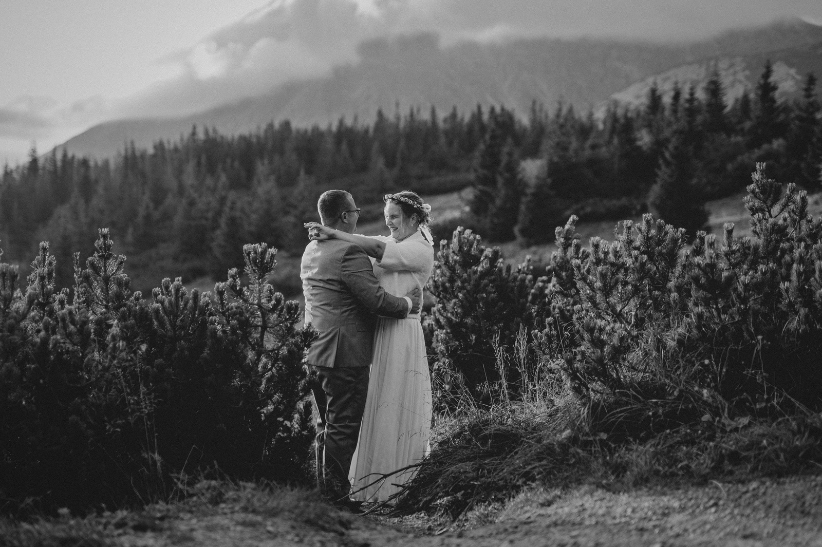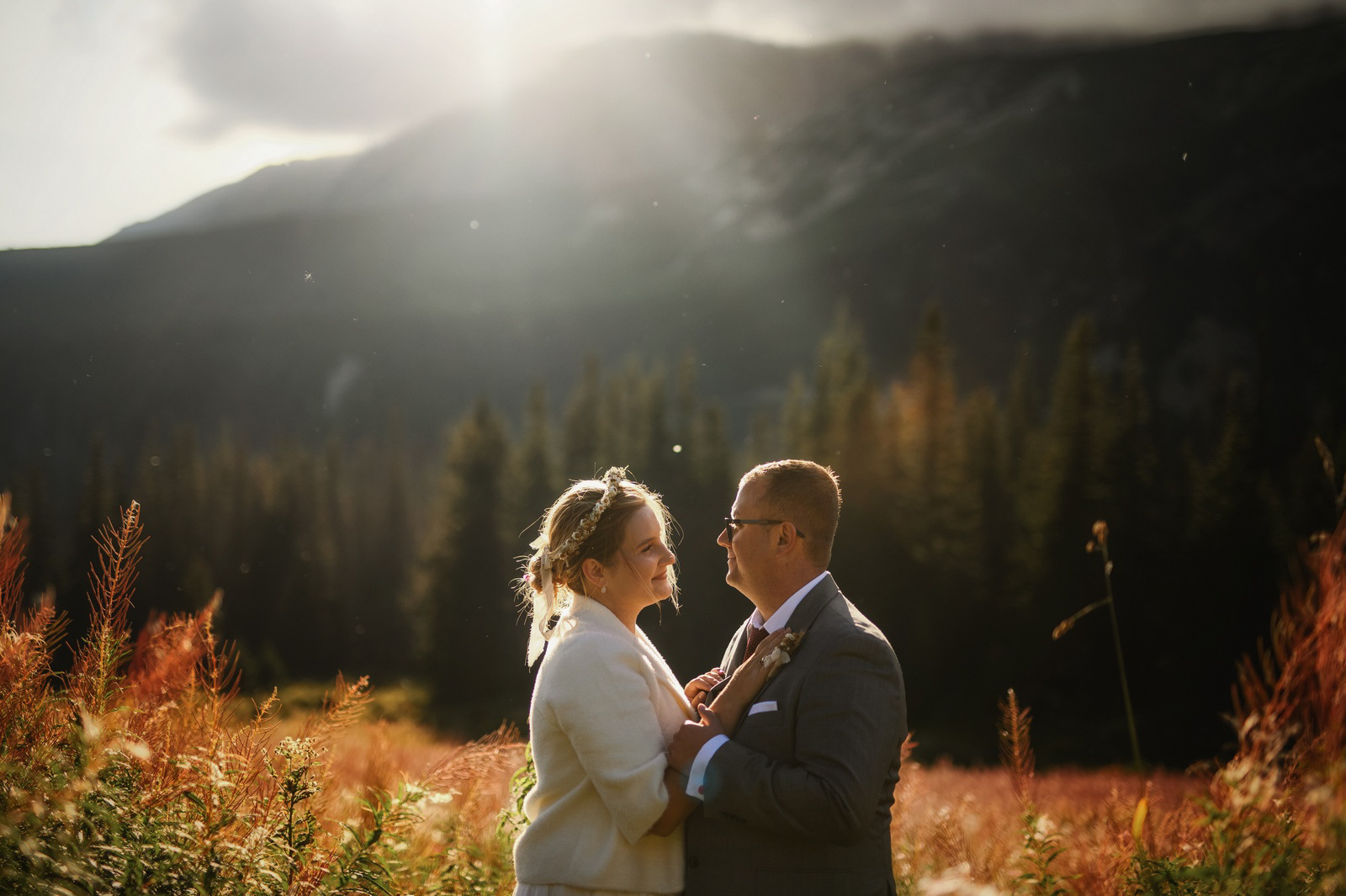 Sesja poślubna o wschodzie słońca na malowniczej Hali Gąsienicowej.