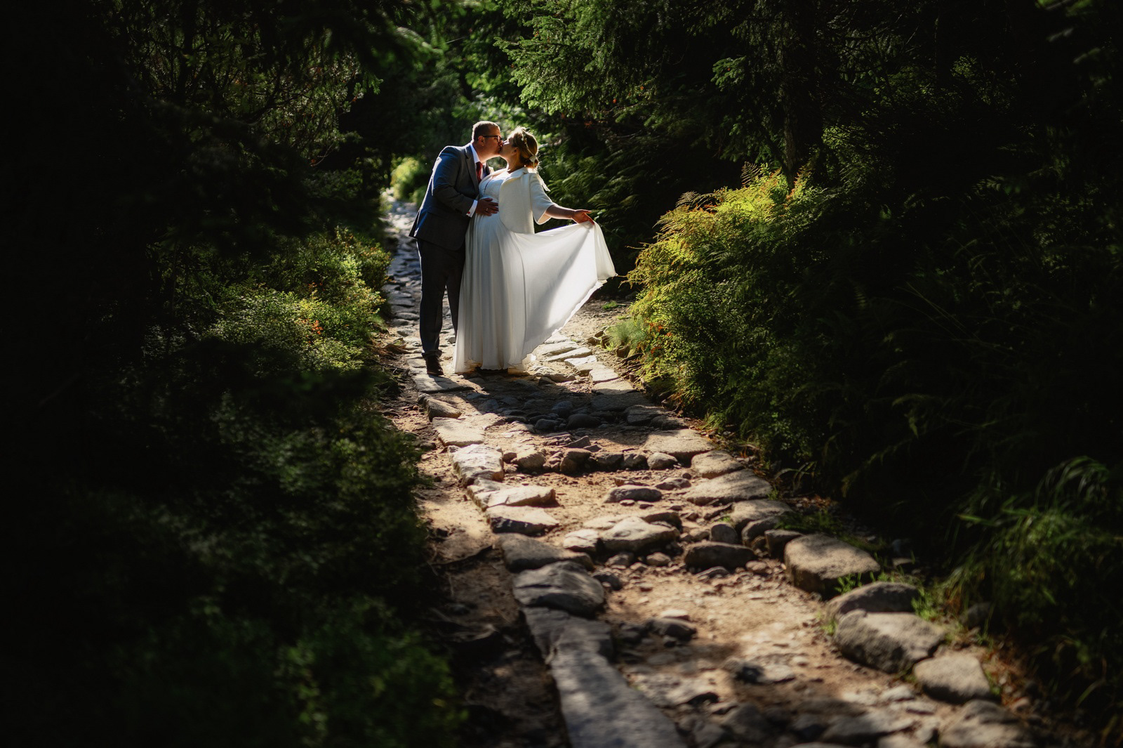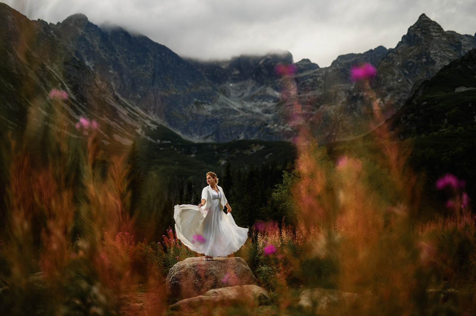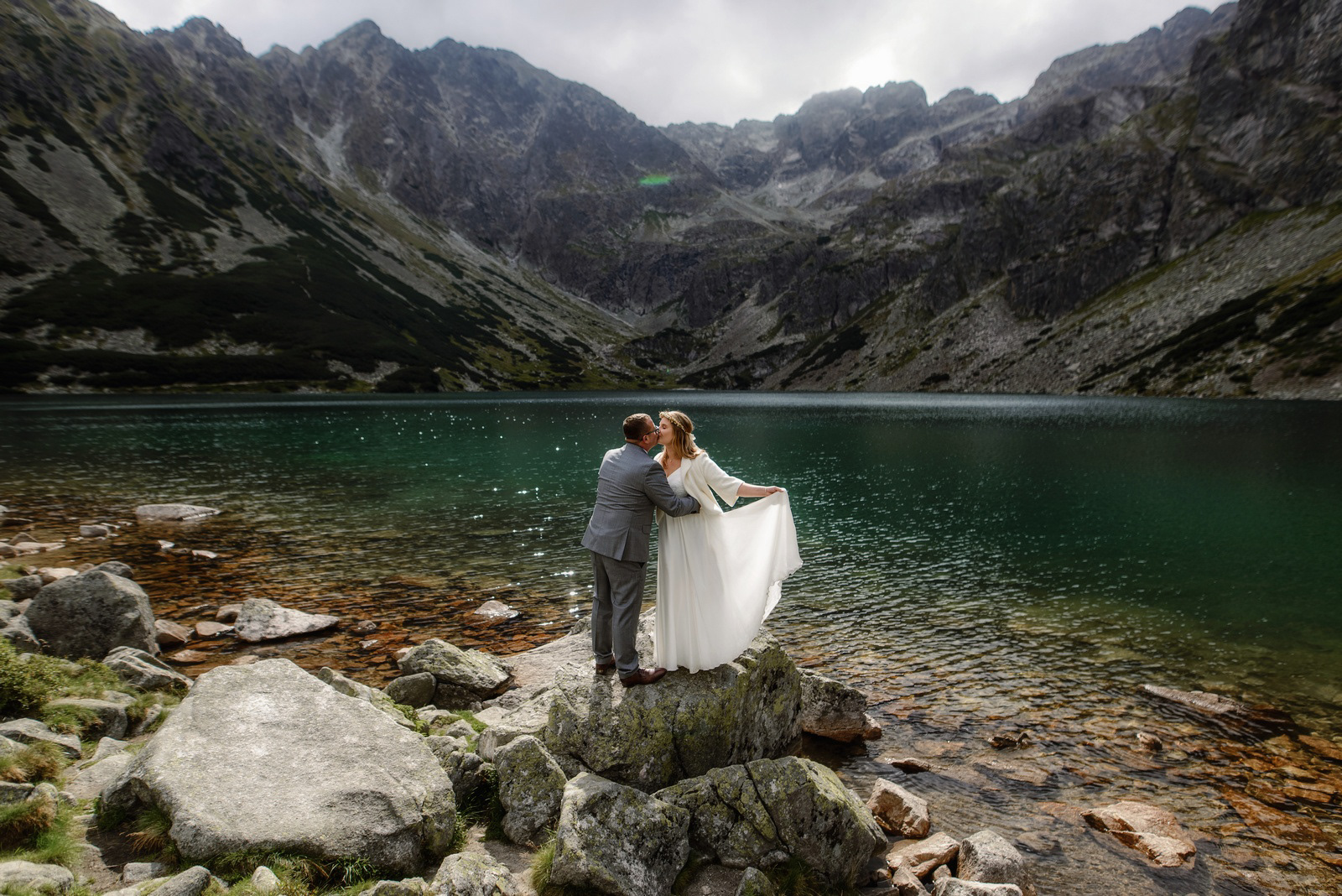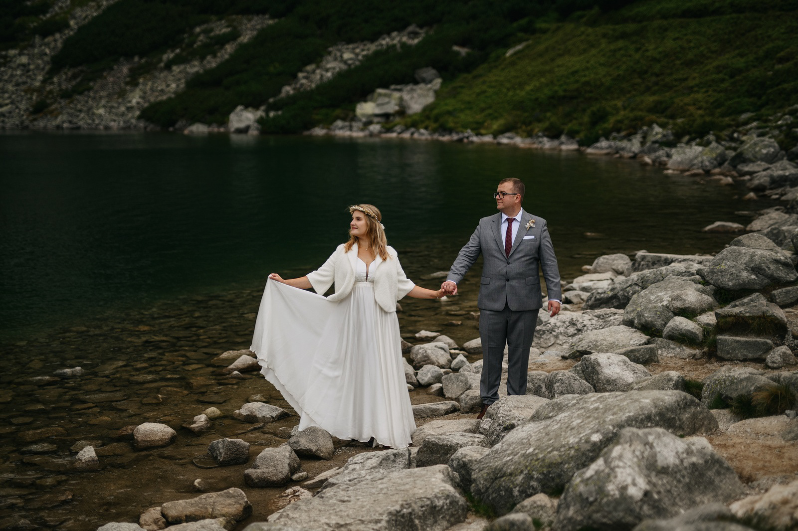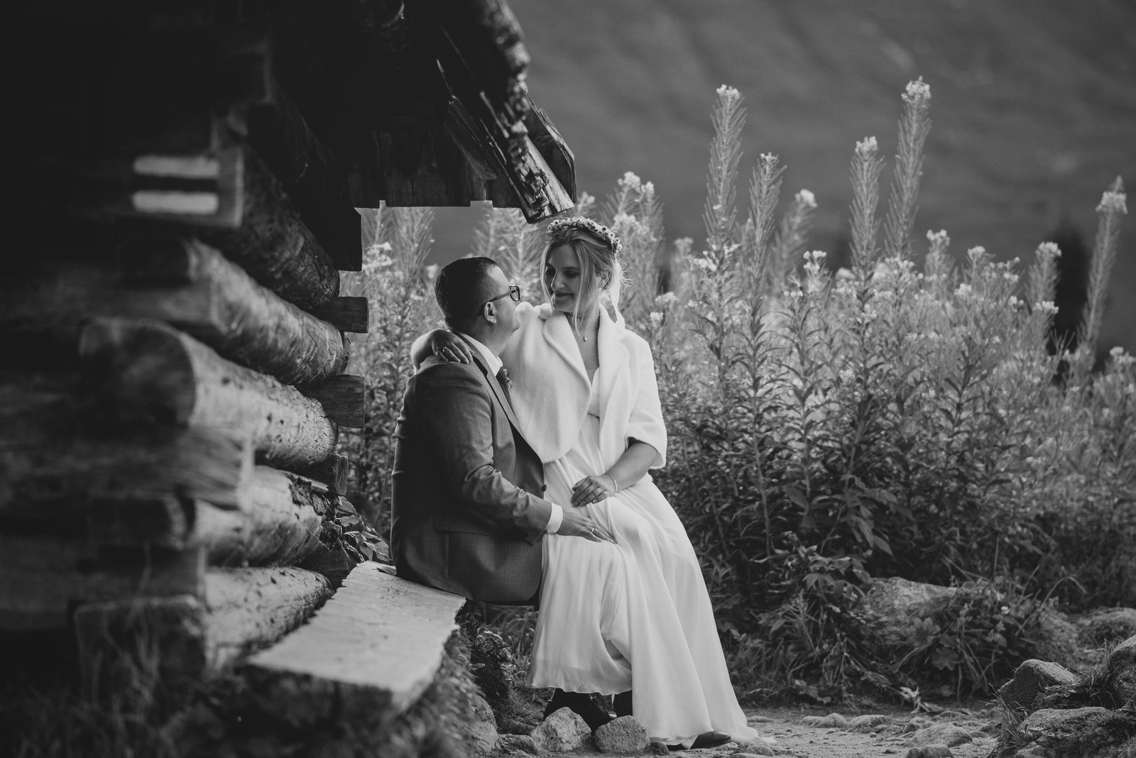 Sesja poślubna o wschodzie słońca na malowniczej Hali Gąsienicowej.